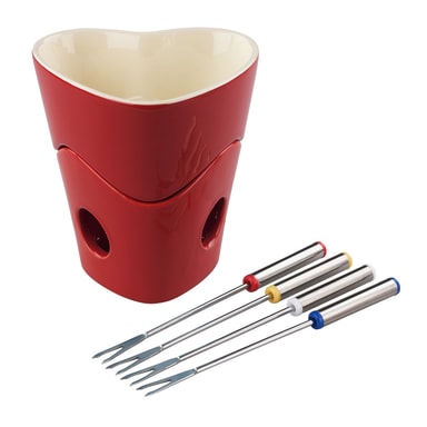 Dypp frukt og marshmallows i varm sjokolade for en perfekt avslutning på en romantisk middag. Fire fargekodede gafler i rustfritt stål er inkludert. Enkel å montere og demontere og det innebærer enkel rengjøring og oppbevaring. Varmes opp av bare ett telys
