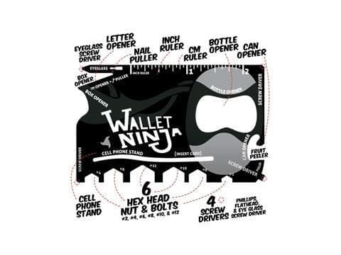 Med Wallet Ninja kan du håndtere både store og små problemer. Kortet har blant annet en boksåpner, en linjal og en brevåpner. Du finner en liste over alle funksjonene nedenfor!