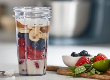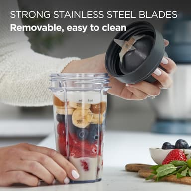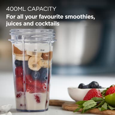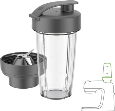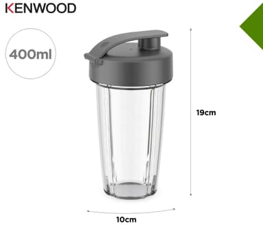 Kenwood Xtract SportGo food processor KAG50.000GY er en bærbar blenderkopp på 400 ml til Kenwood Go, med klinger av rustfritt stål som knuser is, et oppvaskmaskin-vennlig design, og er lett å ta med seg.Les mer om produktet