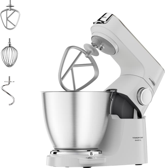 Kenwood Titanium Chef Baker XL kjøkkenmaskin er en kraftfull kjøkkenhjelper. Den har ChefMotor, myk start, hastighetskontroll og EasyWeight-vekt for maksimal brukervennlighet. Det ikoniske designet gjør den til et blikkfang på kjøkkenbenken.Les mer om produktet