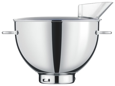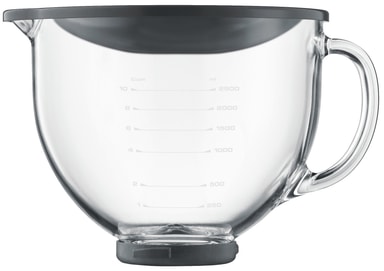 2 medfølgende boller: Velg mellom to medfølgende boller i henhold til hva og hvor mye som skal blandes. Den klare glassbollen rommer 4,8 liter mens bollen i rustfritt stål er på 3,7 liter. Lokket som følger med passer begge boller.