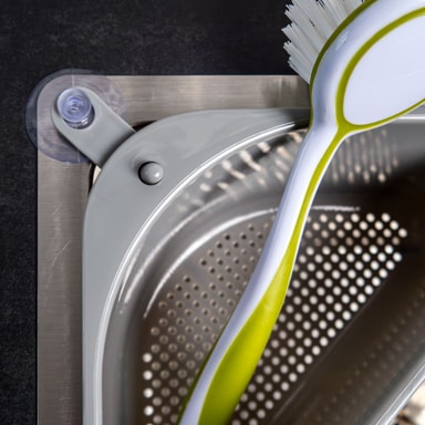 Den trekantede formen med ekstra sugekopp og støtteflater gjør at du kan feste filterkurven i hjørnet av vasken.