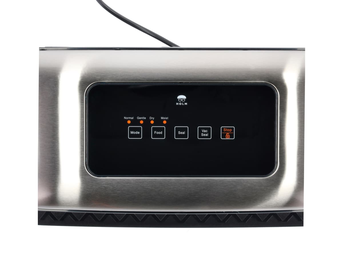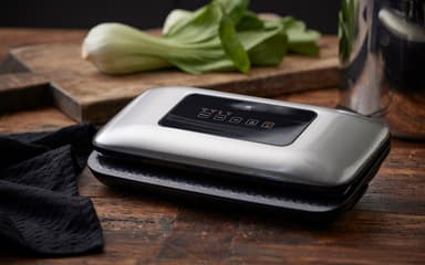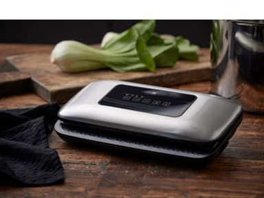 Vakuummaskin til forsegling av både tørre og våte matvarer. Forseglingsprosessen kan stoppes med pauseknappen, og maskinen har sikring mot overoppheting. Gentle-funksjon for skjøre matvarer. Automatisk vakuum og forsegling.