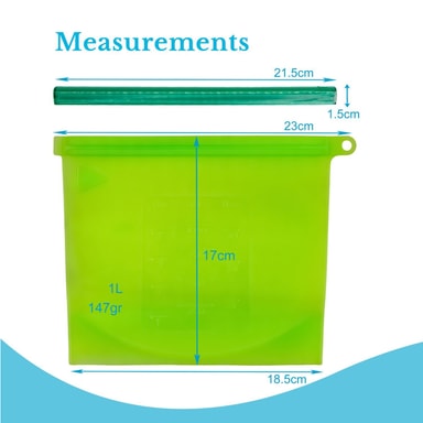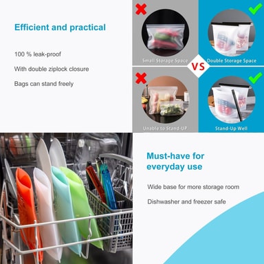 Det praktiske settet med 4 er et uunnværlig kjøkkenredskap som holder maten ferskere lenger. Det er gjenbrukbart og har lufttett glidelås.