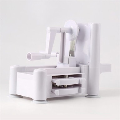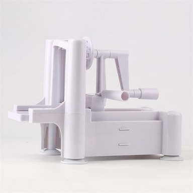 Pynt dine matretter ved hjelp av denne elektriske grønnsaksskjærer. Strimle frukt og grønnsaker og lag remser av grønnsaker som du kan bruke i stedet for pasta. Inkl. 3 ulike tilbehør.