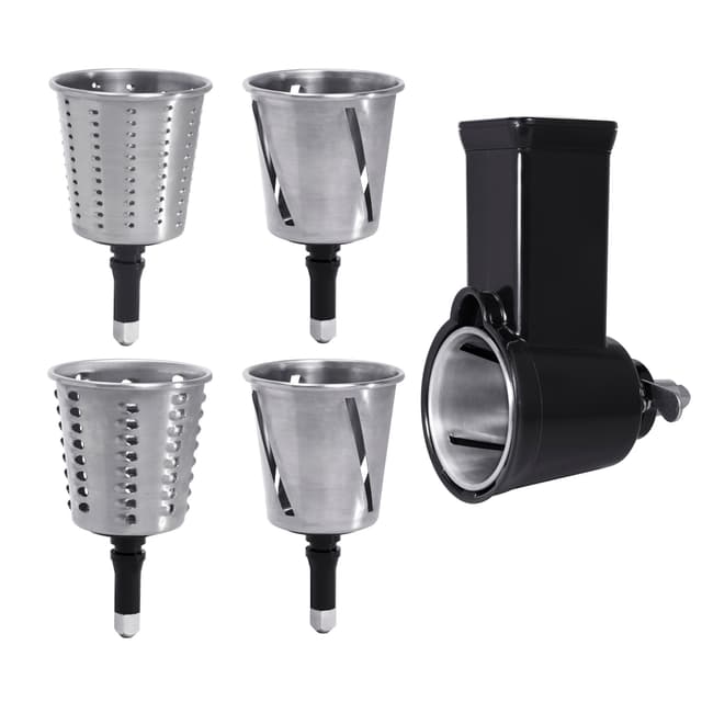 Skjær og kutt på en enkel måte: Kuttetilbehøret er perfekt for tilbereding av salater, hjemmelaget potetgull/pommes frittes og riving av ost.