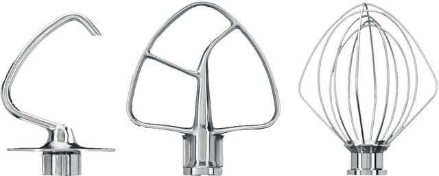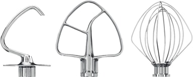Utstyr kjøkkenmaskinen din med dette KitchenAid tilbehørssettet og gjør den til en enda bedre hjelper på kjøkkenet. Pakken inneholder en flat visp, en trådvisp og en deigkrok i rustfritt stål.Les mer om produktet