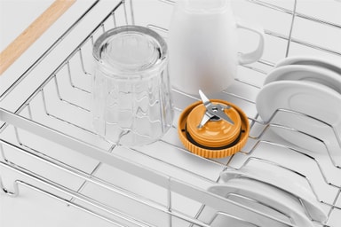 Skru av motorbasen og legg koppen, lokket og kniven i oppvaskmaskinen for rask og enkel rengjøring.