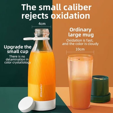 Easy to clean: Rengjøring av denne bærbare juicekoppen er en lek. Den avtakbare designen gir enkel skylling og rengjøring av alle komponenter. Koppen og bladenheten kan raskt demonteres for grundig rengjøring, noe som sikrer hygiene og forhindrer oppbygging av rester. De glatte overflatene og enkle designen gjør det enkelt å tørke rent med en fuktig klut. Bruk mindre tid på rengjøring og mer tid på å nyte dine ferske juicer og smoothies med denne lett-å-rengjøre bærbare juicekoppen. Den enkle designen sikrer at hver del er lett tilgjengelig for rengjøring, noe som gjør det til et praktisk valg for daglig bruk.