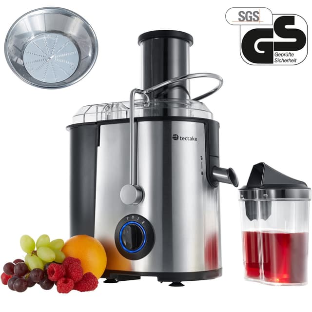 Få det beste ut av frukten din med denne effektive juicepressen fra tectake. Takket være den store åpningen kan du sette inn mange forskjellige frukter og grønnsaker i maskinen hele og uten først å bruke tid på å kutte alt i små biter. Den presise mikrosilen i rustfritt stål garanterer finfiltrering og best mulig juiceresultat ved to hastigheter. Etter bruk kan denne praktiske juiceren fra tectake enkelt demonteres og enkelt skylles med rent vann.