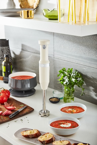 KitchenAid trådløs stavmikser kan skilte med en utløserbryter med variabel hastighet, en 700 ml-blenderkolbe, en avtakbar grytebeskytter og et firepunkts rustfritt stålblad, som til sammen resulterer i et apparat som er et must for ditt kjøkken.Les mer om produktet