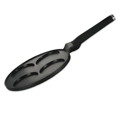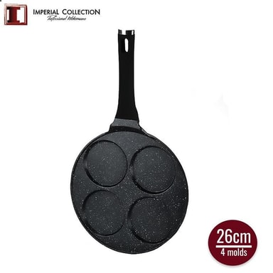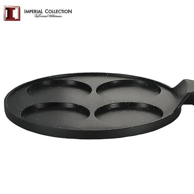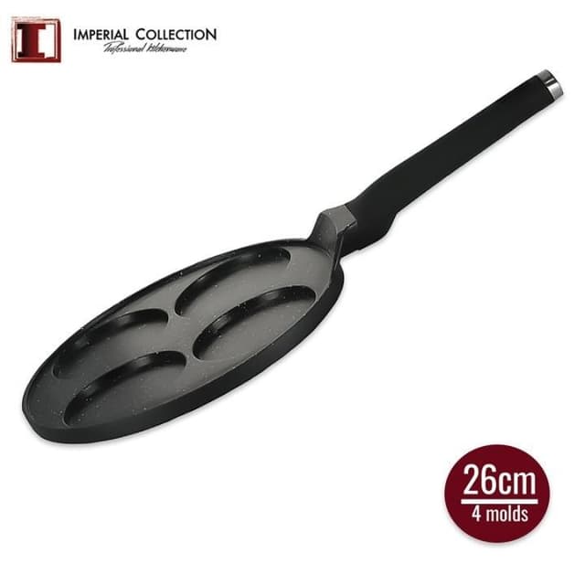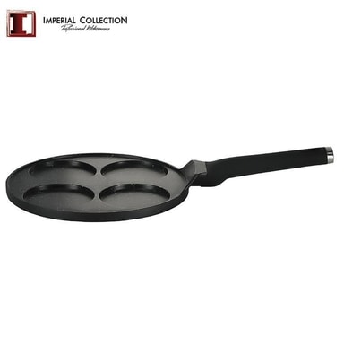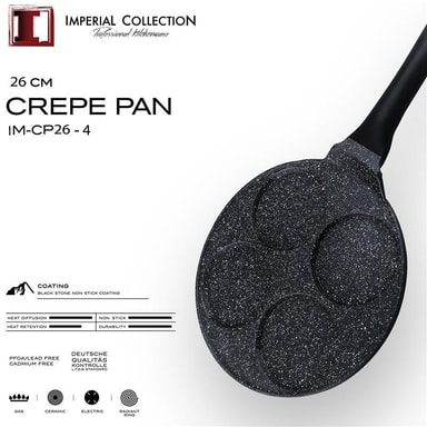Här har du en crepespanna med 4 formar. Med denna panna kan du laga 4st delikata minicrepes åt gången. Perfekt när man vill lyxa till det med familj och vänner. Denna finurliga crepes panna har en nonstickbeläggning av marmor vilket gör att dina små crepes lossnar lätt från pannan.