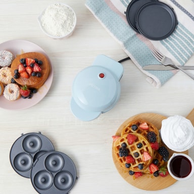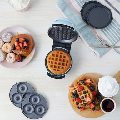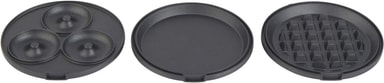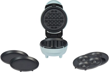 Lag mini-vafler, pannekaker, omeletter og andre deilige småretter med Petra 3-i-1 godbitsteker 500007. Denne kompakte maskinen med 400W effekt inkluderer tre avtakbare 11,8 cm klebefrie plater som varmes opp på bare 3 minutter, noe som gjør det enkelt å lage og rydde opp etter deilige småretter!
