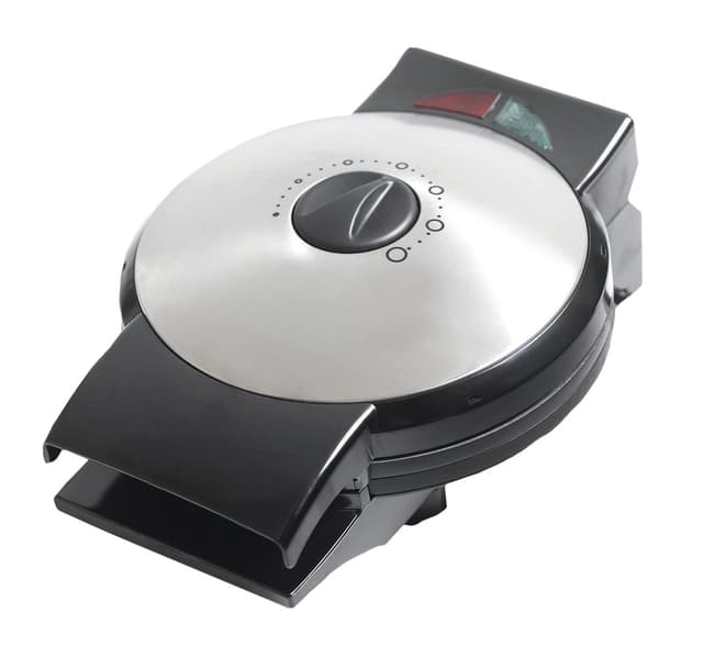 Krumkakejern i børstet stål med justerbar termostat. Det har slippbelegg og oppsamligsrenne for overflødig røre. Praktisk oppbevaring av ledningen. Gummiføttene sørger for at jernet står stødig.