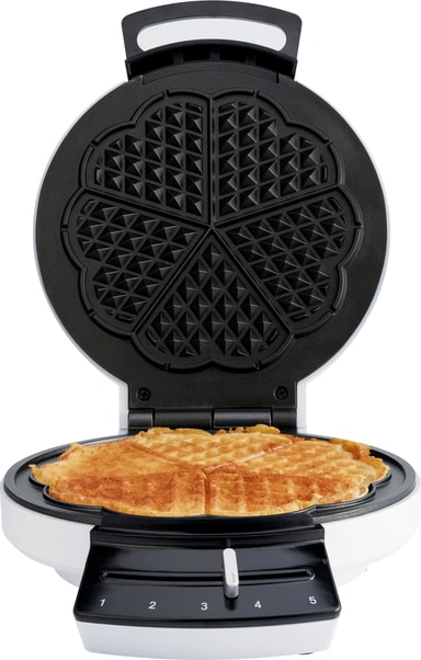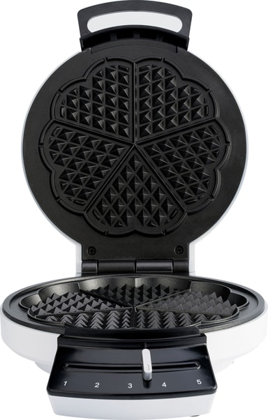 Dette vaffeljernet fra Wilfa er et brukervennlig kjøkkenapparat som vil hjelpe deg med å tilberede utsøkte vafler til hele familien. Vaffeljernet lager vafler med fem hjerter ved, og takket være det doble non-stick-belegget blir det enkelt å få de ferdige vaflene utav jernet. Det har fem temperaturnivå og en lysindikator som informerer deg når vaflene er ferdigstekt.