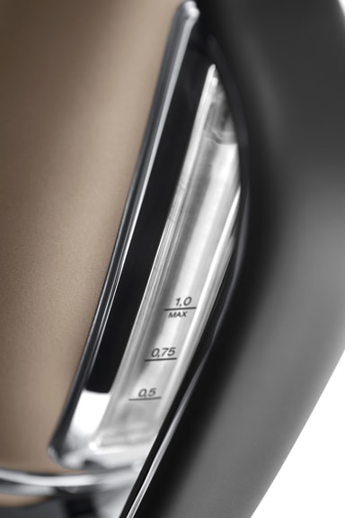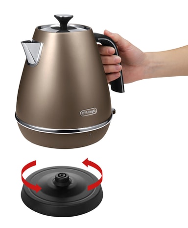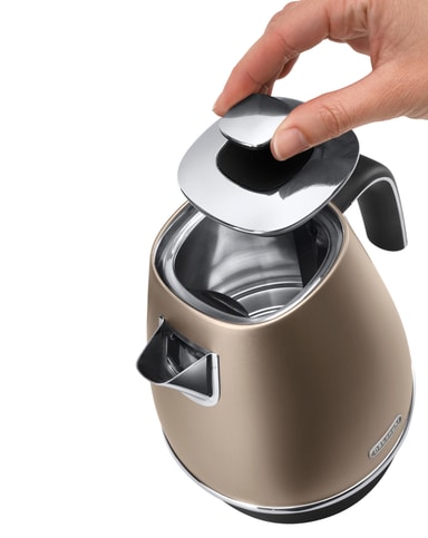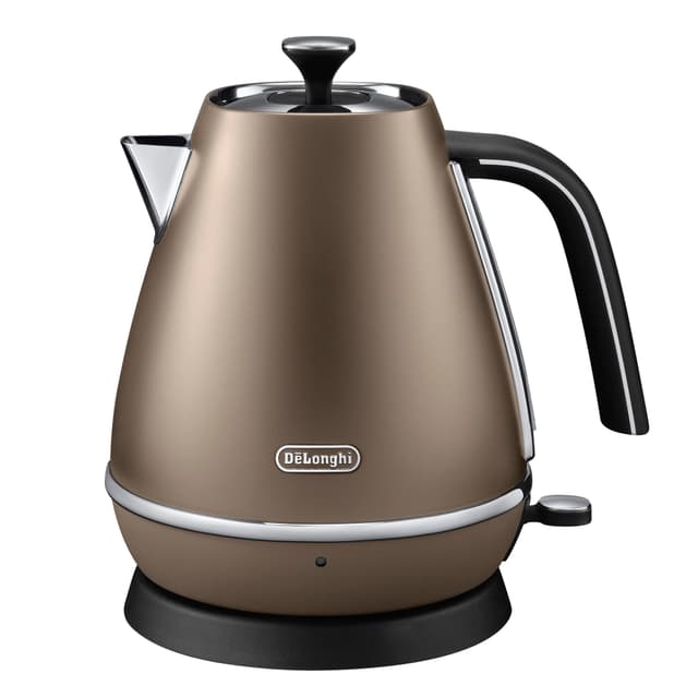 Rask og elegant. Vannkokeren DeLonghi Distinta KBI 2000.BZ i nydelig bronsedesign hjelper deg å lage te eller kaffe på et øyeblikk. Vannkokeren har trippel sikkerhetsfunksjon for trygg bruk, og avtakbart kalkfilter for enkelt renhold.