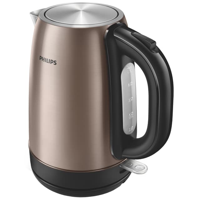 Vannkokereni kobberfarge fra Philips er laget av børstet metall for en slitesterk design og langvarig bruk. Med flatt varmeelement i rustfritt stål er du sikret rask koking av vannet og enkel rengjøring. Anti-kalkfilter sørger for renere vann og en renere vannkoker. Vannkokeren kommer med ledningskveiler, så du kan oppbevare ledningen under basen for enkel løfting og oppbevaring.