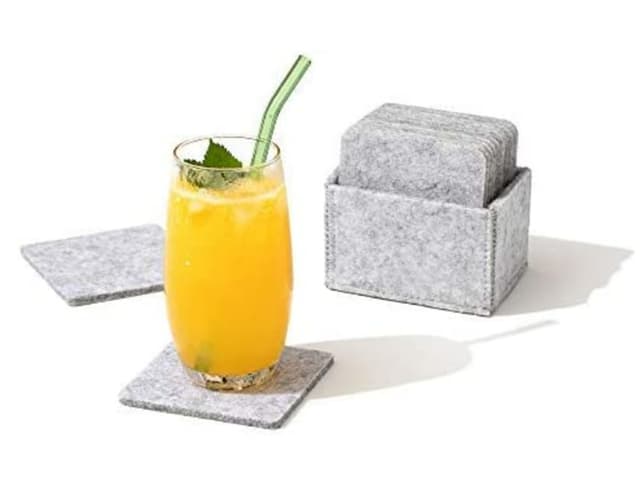Sett med 12 glasunderlag, laget av høykvalitetsfilt, kan understellet absorbere alle væsker: vann, vin, kaffe, øl, juice og mer, beskytte møblene dine mot riper, spor av varme og drypp.