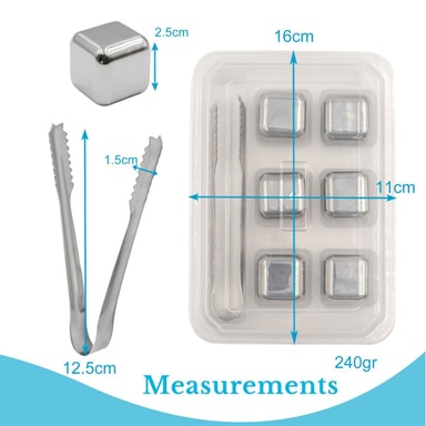 6 stykker gjenbrukbare isbiter i rustfritt stål med oppbevaringsboks perfekt for whiskyterninger med avrundede hjørner