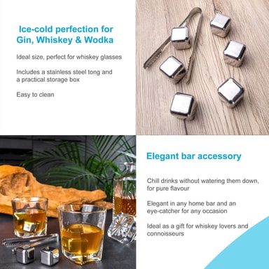 Å vanne ned din dyre favorittwhisky er nå en saga blott - nyt bourbonen din fra nå av med disse praktiske gjenbrukbare whiskyterningene i rustfritt stål!