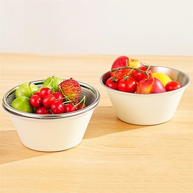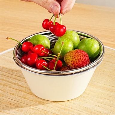 Allsidig bærsiling: Perfekt for siling av bær, designet og materialet til dette dørslaget gjør det spesielt egnet for delikate frukter som jordbær, druer og kirsebær.