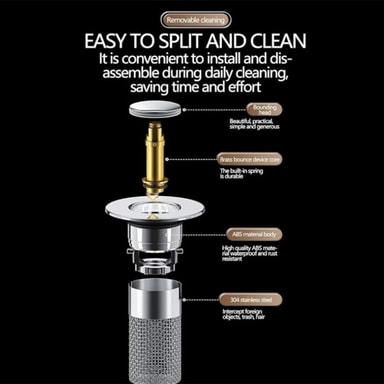 Enkel installasjon: Verktøyfri installasjon betyr at hvem som helst kan installere popup-avløpet! Bare fjern den gamle proppen og sett servantfilteret inn i avløpshullet. Ingen rørlegger eller verktøy nødvendig. For rengjøring, bare fjern den og skyll under rennende vann, bruk en myk børste eller klut for å fjerne gjenstridig rusk. Ikke mer graving for å rydde avløpet P
