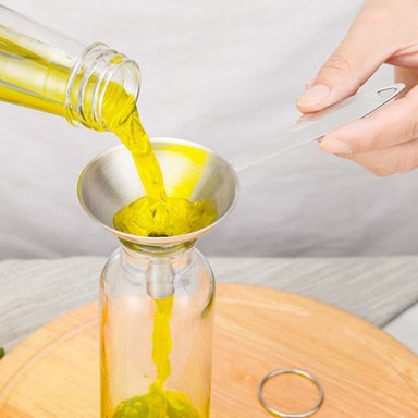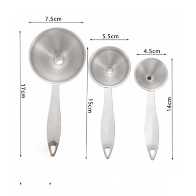 Traktene har en veldig smal stilk, som er perfekt for å raskt og nøyaktig fylle flasker og beholdere med brennevin, eterisk olje, drikke, vin, parfyme etc. Langt håndtaksdesign holder hendene unna den varme væsken og maten. Laget av 304 rustfritt stålmateriale, lett å oppbevare og rengjøre. Kommer med 3 størrelser, tilfredsstiller dine forskjellige behov.