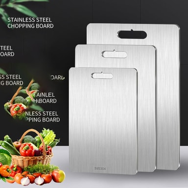 Premium og langvarig: Den 2 mm tykke rustfrie stålkonstruksjonen sikrer eksepsjonell styrke og lang levetid. Dette skjærebrettet tåler hard bruk og motstår vridning, sprekker og riper, og opprettholder dens uberørte tilstand i mange år framover.