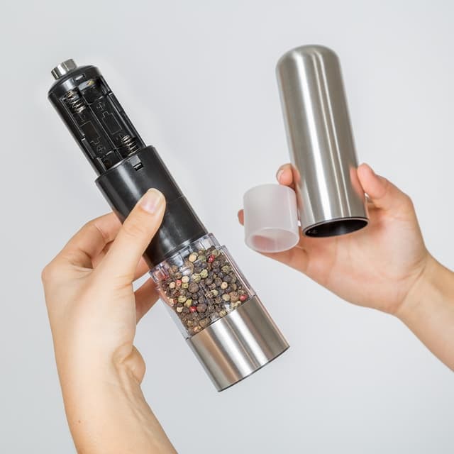 Denne vakre elektriske salt- og pepperkvernen i rustfritt stål med keramikkkvernverk av høy kvalitet gjør krydringen av rettene enklere. Keramikkkvernverket kan stilles inn trinnløst. Ved hjelp av lampen kan man nøyaktig sette pris på den passende mengden krydder i retten.