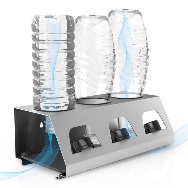 støtter luftsirkulasjon for raskere tørking. Sporet på fronten lar deg oppbevare flaskekorken, mens tørkestativet enten kan plasseres på en overflate eller festes til en vegg Overflaten er vanntett og lett å vaske. Der oppbevares flasker trygt, og sparer plass og ryddig, slik at kjøkkenet ditt holder seg ryddig og rent. Materialet i sølv i rustfritt stål er robust og ripebestandig.