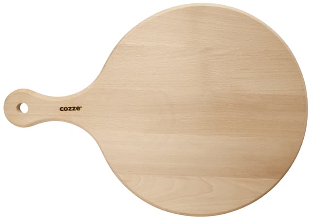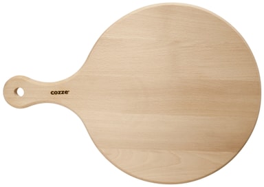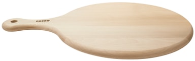 Pizzaskjærebrett laget i solid bøk. Skjærebrettet er slitesterkt og holder lenge. Inkl. praktisk håndtak. Mål: Ø300 mm x 450 mm Produktet er godkjent for næringsmidler - LFGB. FSC®-sertifisert.