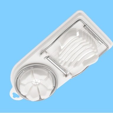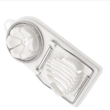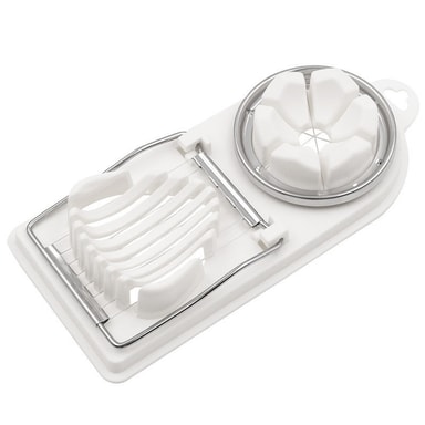 2-i-1 design: Denne eggkutteren i rustfritt stål har en 2-i-1-design, som lar deg enkelt lage både skiver og båter med ett enkelt verktøy. Den doble funksjonaliteten gir allsidighet for ulike kulinariske bruksområder, fra salater og smørbrød til garnityr og forretter. Den effektive designen sikrer konsistente og jevne kutt hver gang, noe som forbedrer presentasjonen av rettene dine. Kutteren er perfekt for hardkokte egg, sopp, jordbær og andre myke matvarer, noe som gjør den til et verdifullt tillegg til ethvert kjøkken. Nyt bekvemmeligheten og presisjonen til denne multifunksjonelle eggkutteren.