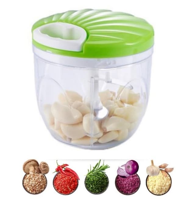 Mini-grønnsakshakker: Du kan håndtere denne grønnsakskutteren manuelt ved å trekke i snoren, som roterer de ekstremt skarpe, avtakbare rustfrie bladene.