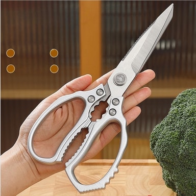 Sterke og skarpe blader: Denne kjøkkensaksen er laget av førsteklasses rustfritt stål, og har eksepsjonell styrke og skarphet. Bladene er designet for å opprettholde sin skarphet selv etter gjentatt bruk, og sikrer jevn ytelse. De presisjonskonstruerte bladene gir rene og nøyaktige kutt, og minimerer avfall og maksimerer effektiviteten. Denne saksen er ikke bare sterk nok til å kutte gjennom bein, men også delikat nok til å håndtere delikate urter og grønnsaker. Det korrosjonsbestandige rustfrie stålet sikrer langvarig ytelse, noe som gjør denne saksen til en verdifull investering for ethvert kjøkken. De er også kompatible med forskjellige slipeverktøy, slik at du kan opprettholde skarpheten over tid. Den ergonomiske designen sikrer komfortabel bruk, selv under lange kutteøkter.