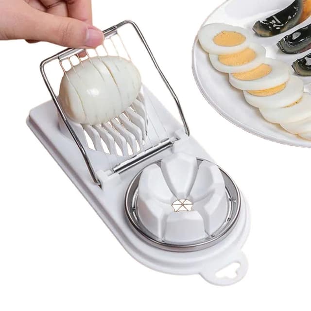 Äggskäraren är gjord av högkvalitativt rostfritt stål 304-tråd, säker och praktisk. med en perfekt ägglucka glider inte ägget iväg. Du kan också hantera andra livsmedel som svamp, jordgubbar, etc.