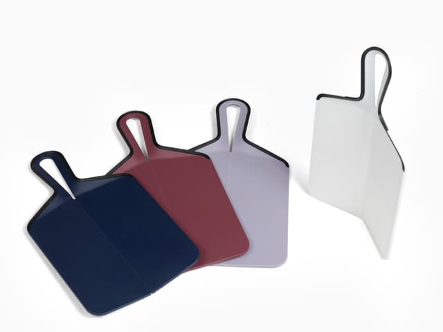 Skjærebrett med brett, 39 x 21,5 x 0,5 cm. Skjærebrettet er laget av PP-plast og har en praktisk knekk på langs slik at du enkelt kan brette det som en trakt og helle matvarene i skålen eller gryten uten å søle. Velegnet for oppvaskmaskin.