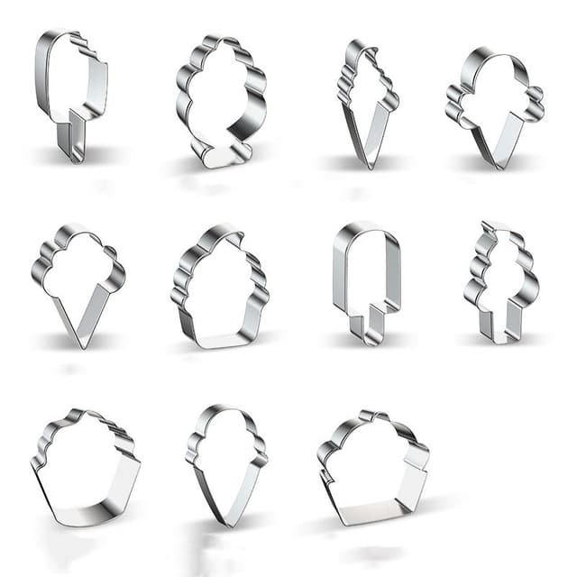 Formene i ulike former er laget av rustfritt stålmateriale, enkle å bruke og rengjøre, perfekt for å lage småkaker, bakverk, desserter, pannekaker og oppskåret kakedeig, fondant, myk frukt, brød, smørbrød, ost, etc.