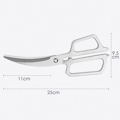 Enkel skärning: Upplev hur enkelt det är att skära genom fågel, kött och grönsaker med vår Starflame BBQ-sax. De vassa bladen i rostfritt stål ger rena och exakta snitt varje gång, vilket gör matlagningen till en barnlek. Den ergonomiska designen säkerställer ett bekvämt grepp och minskar handtrötthet vid längre användning. Perfekt för både matlagning inomhus och utomhus, dessa saxar kommer snabbt att bli ditt bästa verktyg för alla dina kulinariska behov. Njut av perfekt portionerade måltider och enkel matlagning med dessa mångsidiga köksaxar.