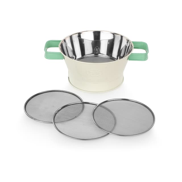Trippelsilen har tre utskiftbare skiver i rustfritt stål og en emaljert kropp. Et fint, mellomstort og grovt siktenett – alt i ett produkt.Les mer om produktet