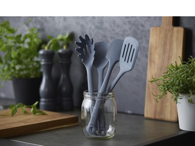 Gode resultater på kjøkkenet starter med godt kjøkkenutstyr. Med denne enkle pastaskjeen får du god kvalitet og brukervennlig design. Pastaskjeen er laget av metall og har silikonbelegg som gir godt grep når du skal servere pastaskruer og spaghettiLes mer om produktet