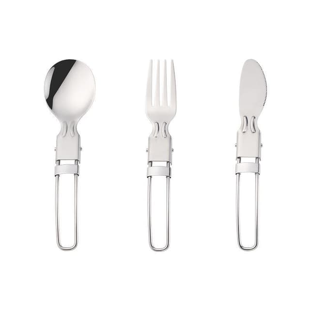 Bestikksett som inneholder gaffel, kniv og skje. Hvert bestikk er sammenleggbart, enkelt å ta med seg og oppbevare. Bestikket er laget av matgodkjent holdbart rustfritt stål.