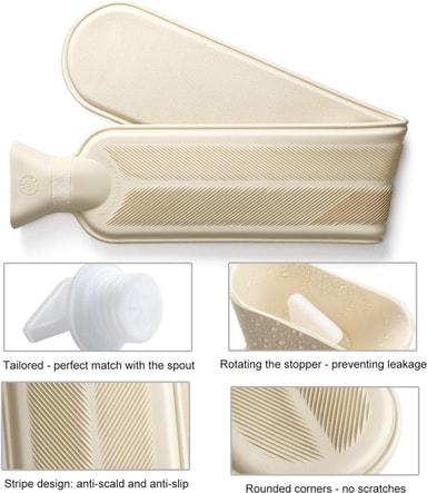 Lindre smerter og plager: Hvis du opplever muskelsmerter eller kroppssmerter, er en varmeflaske perfekt. Bare fyll den med varmt vann og plasser den der du trenger lindring. Varme kan lindre en rekke smerter, fra hodepine til kramper.