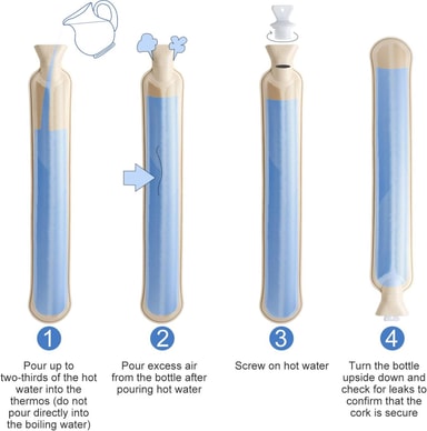 Trygg og enkel å bruke: Det brede lokket hindrer deg i å brenne deg når du fyller på vann, noe som også gjør det raskt og trygt å fylle vannposen uten risiko for at den renner over.