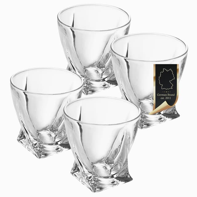 4x Old Fashioned Whisky krystallglass, blyfritt i skulpturdesign, tåler oppvaskmaskin , perfekt for Scotch, bourbon, whisky og mye mer.
