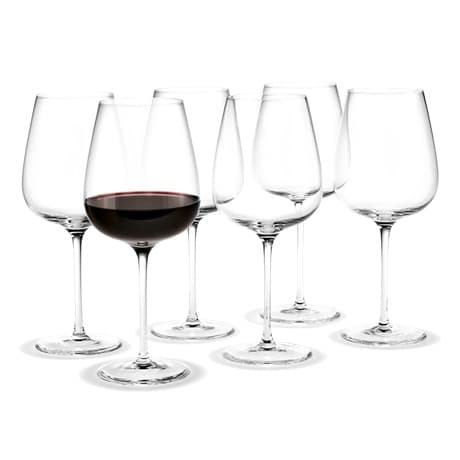 Dekk bord med trendy glassdesign. Peter svarrers bouquet-glasserie er laget med fokus på det moderne måltidet, vinkorrekt servering og design som t�ler å bli brukt og nytt. Den store overflaten i rødvinsglasset frigjør vinens bouquet og utfolder smaks- og duftnyansene. Lufting av en ung rødvin på en stor overflate åpner og mykgjør vinen og forbedrer opplevelsen markant. I serien finner du også glass til hvitvin, hetvin, vann, champagne og øl. Selges både enkeltvis og i en pakke á 6 stk. God gaveidé til mange anledninger.