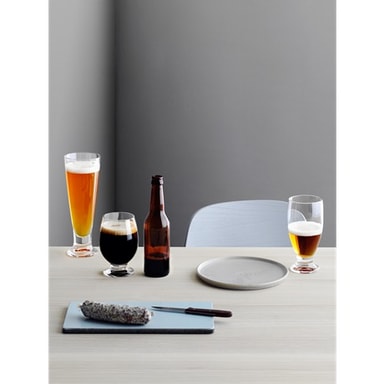 Humle-glasset til ale er et fyldigt glas, der giver den kraftige øls smagsnuancer plads til at udfolde sig. Sammen med designer og ølentusiast torben jørgensen sætter holmegaard nu fokus på ølservering for fagfolk og feinschmeckere. Humle-serien er mundblæst og skabt til at hylde håndværket ved velbryggede specialøl, der bør behandles og serveres på samme niveau, som vinen er blevet det gennem tiden. En god gaveide til ølkendere og dem, som ønsker at blive det.