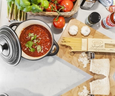 En emaljert støpejernspanne med stor kapasitet som gjør at du kan tilberede supper, gryteretter, biffer og langsomme kokker for hele familien!