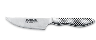 Gs-87 universalkniv fra global har et kort blad på 10,5 cm og er skapt til finessearbeid som krever at du kan komme helt tett på råvarene. Den høye stålkvaliteten sikrer at knivene holder seg skarpe lenger enn andre kjøkkenkniver. Skapt uten samlinger og med et buet grep som sikrer at du har et godt tak på kniven når du jobber på kjøkkenet. Den japanske globalserien har over 70 deler til alle formål. Det fulle sortimentet fås her.