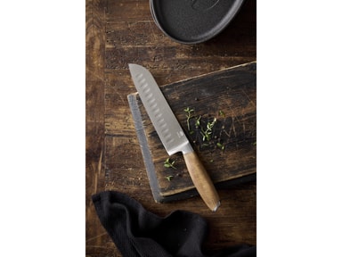 Knivsettet inneholder fem flotte kniver – urtekniv (20 cm), universalkniv (24 cm), santokukniv (31 cm), kokkekniv (33 cm) og brødkniv (33 cm)Les mer om produktet
