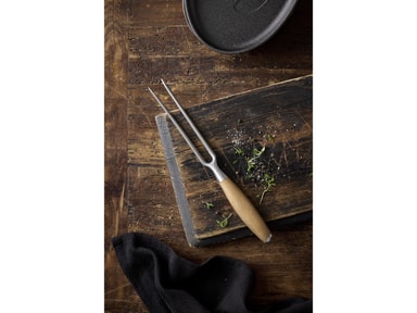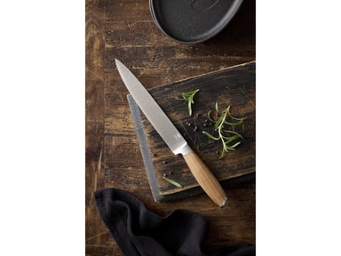 Knivsettet inneholder fem flotte kniver – universalkniv (24 cm), santokukniv (31 cm), filetkniv (33 cm), kokkekniv (33 cm), brødkniv (33 cm) – og en stekegaffel (29 cm)Les mer om produktet
